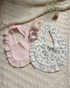 Two soft muslin bibs: One in solid blush pink and one in charming floral print.